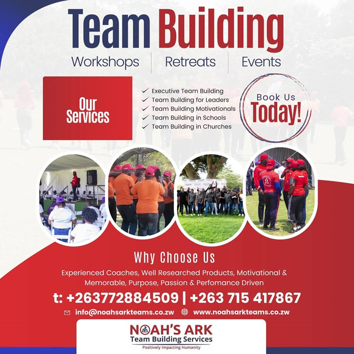 <mailto:info@noahsarkteams.co.zw?subject=bizlist%20team%20building%20lead> You are receiving this email because you are subscribed to the Biz List. <https://www.facebook.com/BizListZimbabwe> | <mailto:info@webimagineers.co.zw?subject=bizlist_advertise> Would you like to change how you receive these emails? Please <mailto:bizlist@webimagineers.co.zw?subject=bizlist_join> update your preferences or <mailto:webimagineers@gmail.com?subject=bizlist_leave> unsubscribe from this mailing list. Email Marketing by <http://www.webimagineers.co.zw/> -- This email has been checked for viruses by AVG antivirus software. www.avg.com