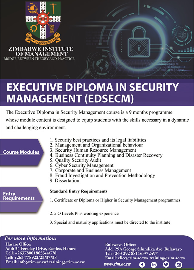 <mailto:info@zim.ac.zw?subject=bizlist%20executive%20diploma%20in%20security %20management%20lead> You are receiving this email because you are subscribed to the Biz List. <https://www.facebook.com/BizListZimbabwe> | <mailto:info@webimagineers.co.zw?subject=bizlist_advertise> Would you like to change how you receive these emails? Please update your preferences <mailto:bizlist@webimagineers.co.zw?subject=bizlist_join> or unsubscribe <mailto:webimagineers@gmail.com?subject=bizlist_leave> from this mailing list. Email Marketing by <http://www.webimagineers.co.zw/> -- This email has been checked for viruses by AVG antivirus software. www.avg.com