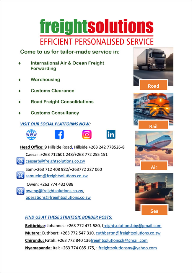 <http://www.freightsolutions.co.zw/> You are receiving this email because you are subscribed to the Biz List. <https://www.facebook.com/BizListZimbabwe> | <mailto:info@webimagineers.co.zw?subject=bizlist_advertise> Would you like to change how you receive these emails? Please update your preferences <mailto:bizlist@webimagineers.co.zw?subject=bizlist_join> or unsubscribe <mailto:webimagineers@gmail.com?subject=bizlist_leave> from this mailing list. Email Marketing by <http://www.webimagineers.co.zw/> -- This email has been checked for viruses by AVG antivirus software. www.avg.com