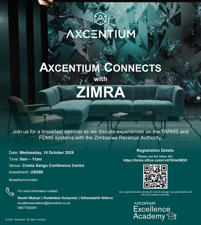 INVITATION: Axcentium Connects with ZIMRA Business Breakfast | 15 October 2025 | Cresta Sango Conference Centre