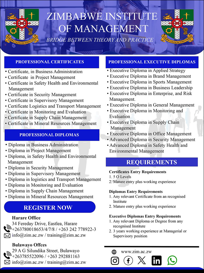 <mailto:info@zim.ac.zw?subject=bizlist%20jan%20&%20feb%202026%20programs%20i ntake%20lead> You are receiving this email because you are subscribed to the Biz List. <https://www.facebook.com/BizListZimbabwe> | <mailto:info@webimagineers.co.zw?subject=bizlist_advertise> Would you like to change how you receive these emails? Please update your preferences <mailto:bizlist@webimagineers.co.zw?subject=bizlist_join> or unsubscribe <mailto:webimagineers@gmail.com?subject=bizlist_leave> from this mailing list. Email Marketing by <http://www.webimagineers.co.zw/> -- This email has been checked for viruses by AVG antivirus software. www.avg.com